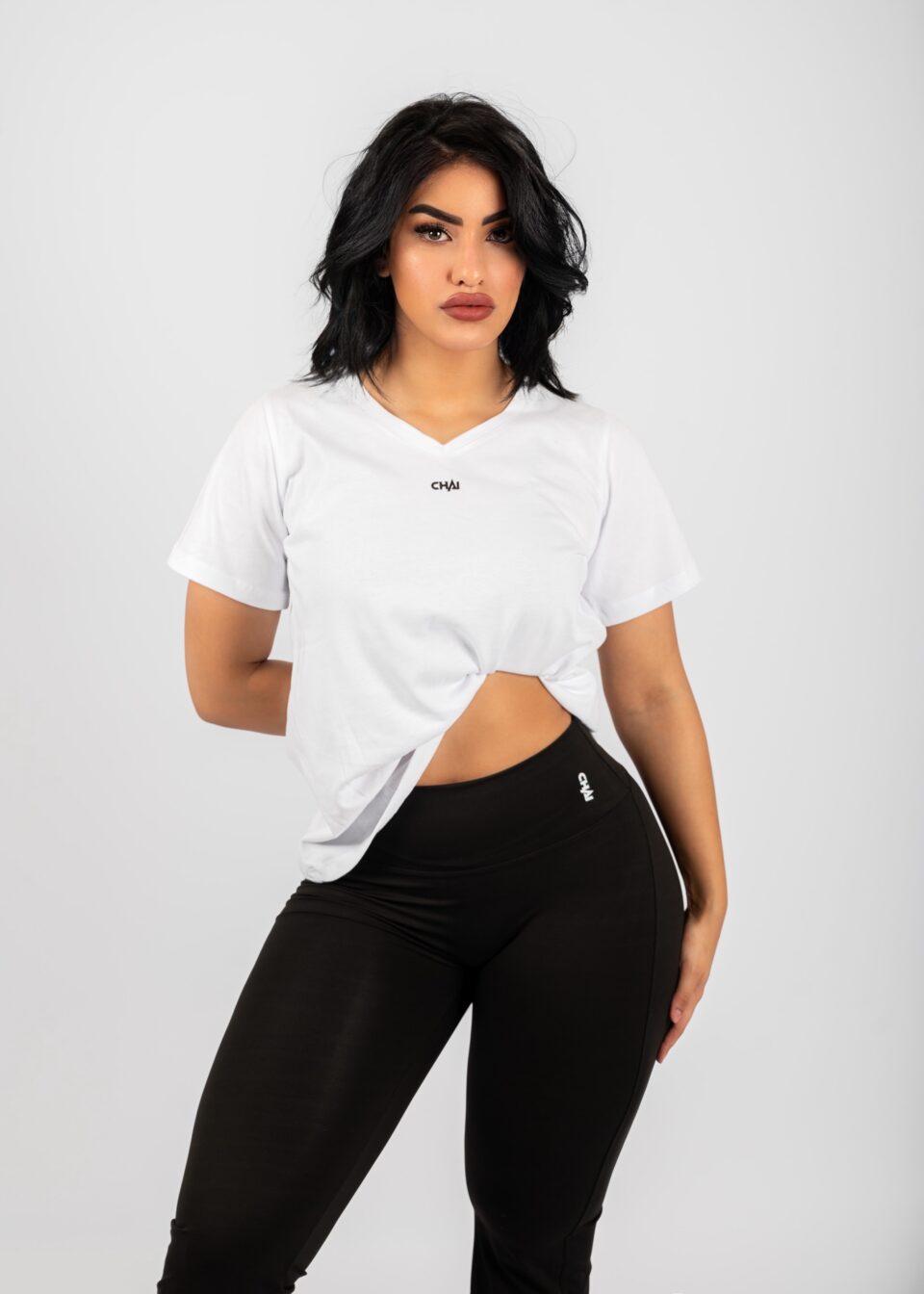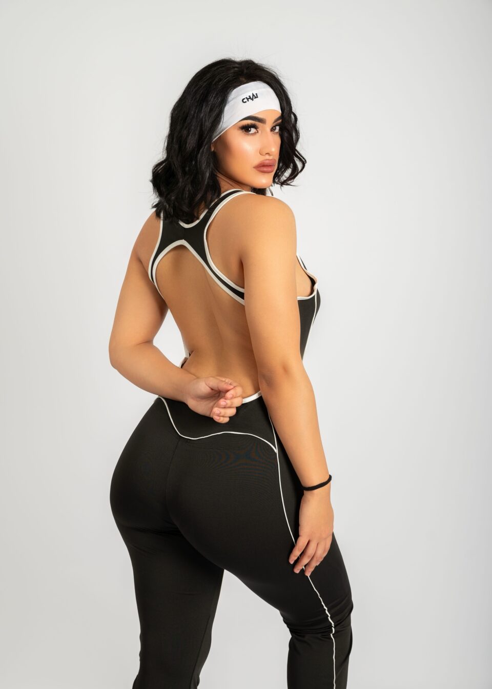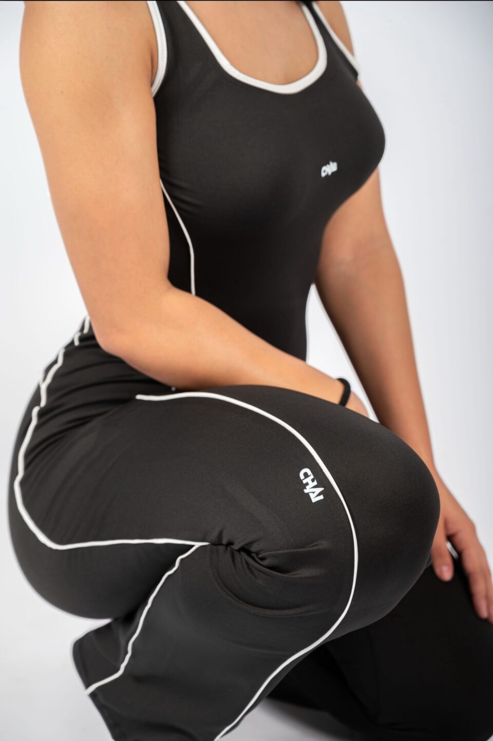 High collar, breathable fabric, second-skin fit with a front zipper and “CHAI” detailing.