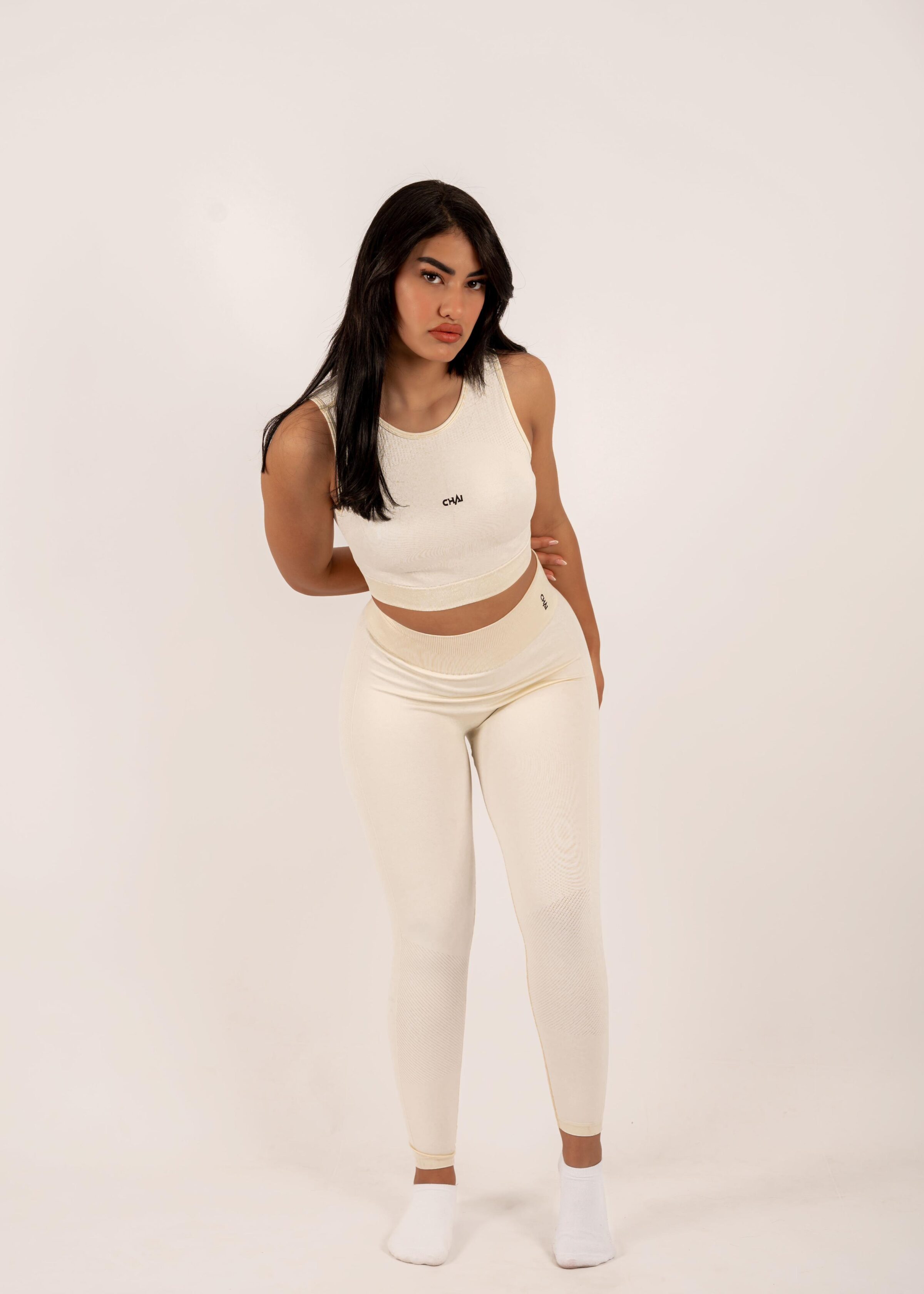 Elevate your workout wardrobe with our seamless matching set, available in elegant cream and classic black. Designed to provide a sleek and supportive fit, this set ensures both style and functionality.