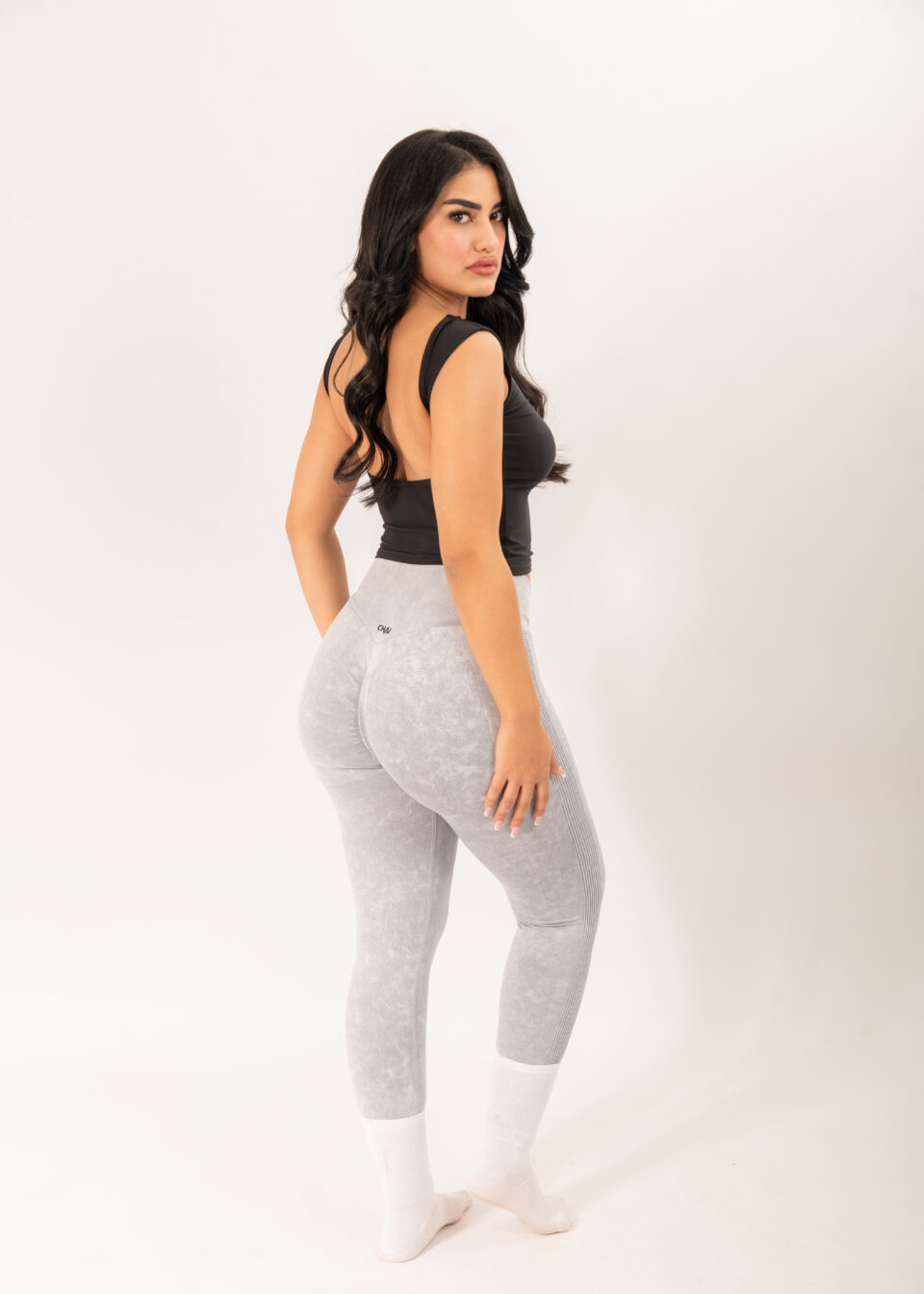 Soft, stretchy, body-sculpting seamless leggings with a washed grey texture. Perfect for gym, yoga, pilates, and everyday wear